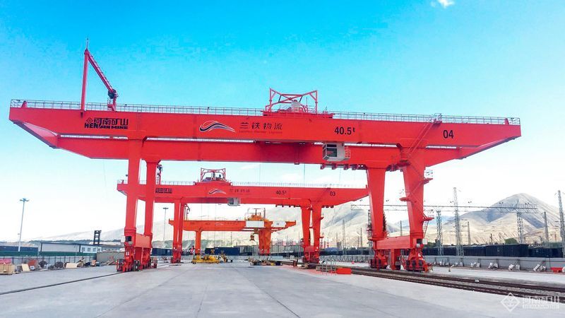 河南矿山为兰州国际港务区设计制造的CMJ40.5T-35MA8轨道式集装箱门式起重机使用性能良好。兰州国际港务区是“一带一路”经济带上国际贸易的枢纽港,连接中亚、西亚和欧洲市场的综合物流中心,助推“丝绸之路经济带”建设的重要支点。该集装箱门式起重机实现了全智能无人化作业。