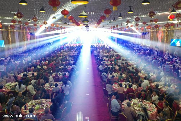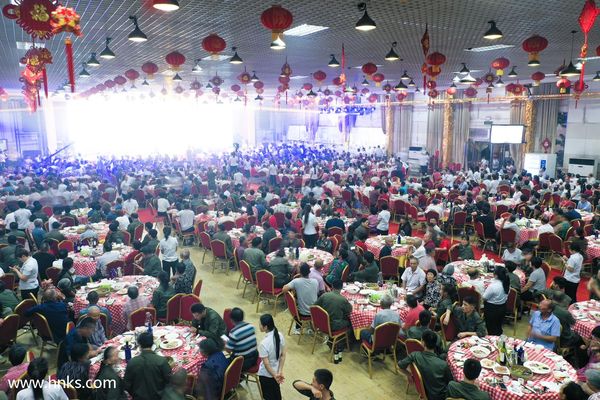 崔书记为了使在忙了这么多天的工友们过一个愉快的中秋,专门安排后勤采购人员,多备食材,在第五场父母筵结束后,又摆了五十多桌,举办我们员工自己的“庆中秋联欢晚会”,所用烟、酒、菜和宴请父母一个标准。联欢会期间,崔书记还为每一位参与的员工发钱,每次400元,从开始到结束发了三次,每人共计1200元。
